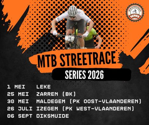 De MTB StreetRace Series 2026 omvat een reeks spectaculaire wedstrijden die stads- of sportcentra omtoveren tot ware mountainbikeparcours. Een MTB Streetrace is geen doorsnee race, maar een strijd tegen de klok en de elementen, pal in het het hart van de actie.