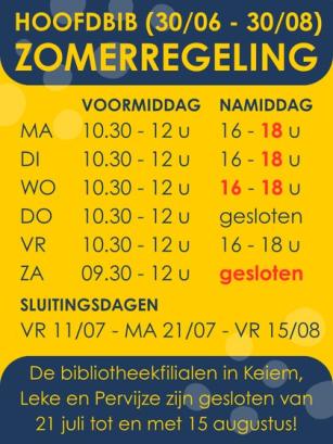 Vanaf 30 juni schakelt de bibliotheek over op de zomerregeling, die loopt tot het einde van de vakantie. Bekijk dus goed de openingsuren voor je langskomt.